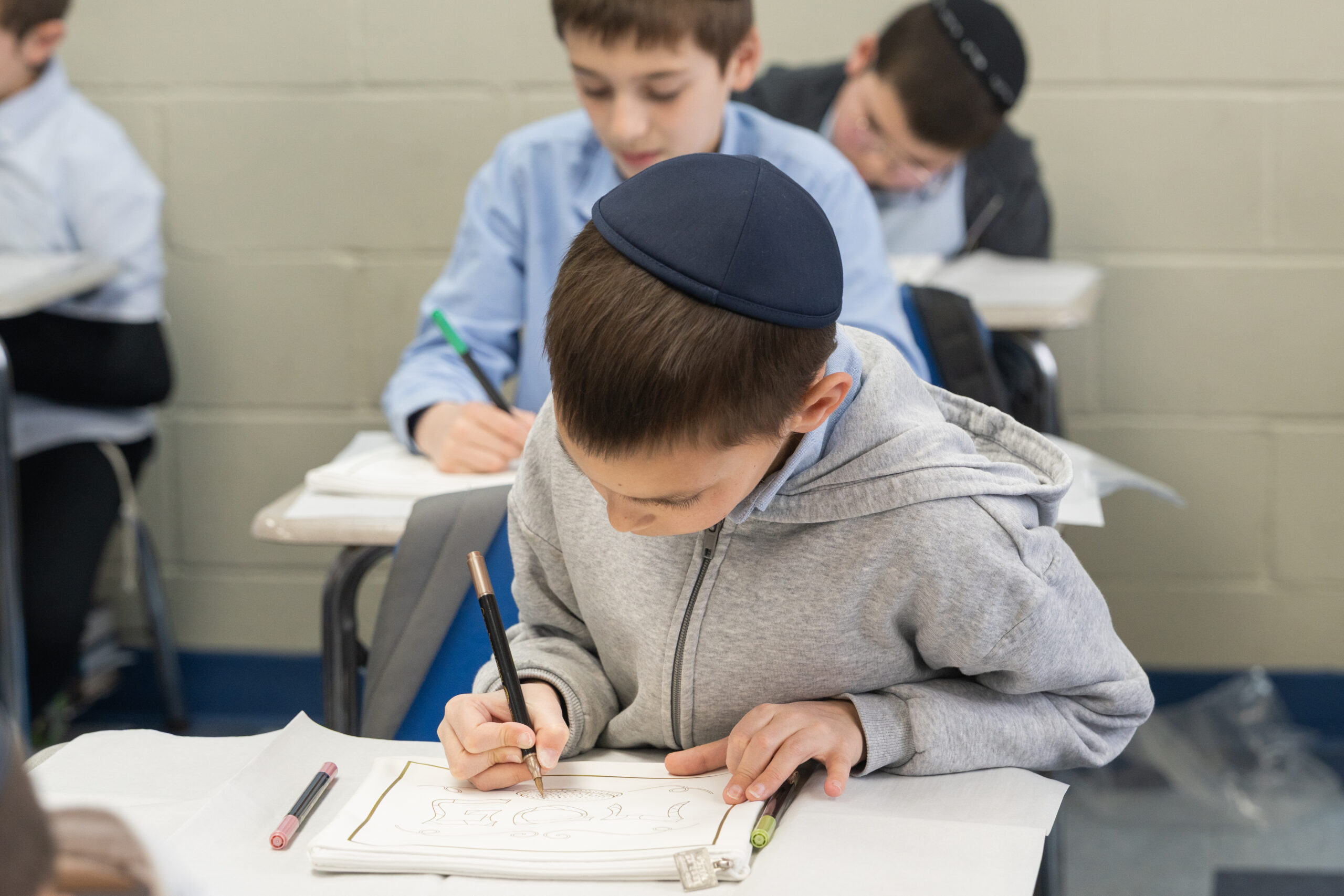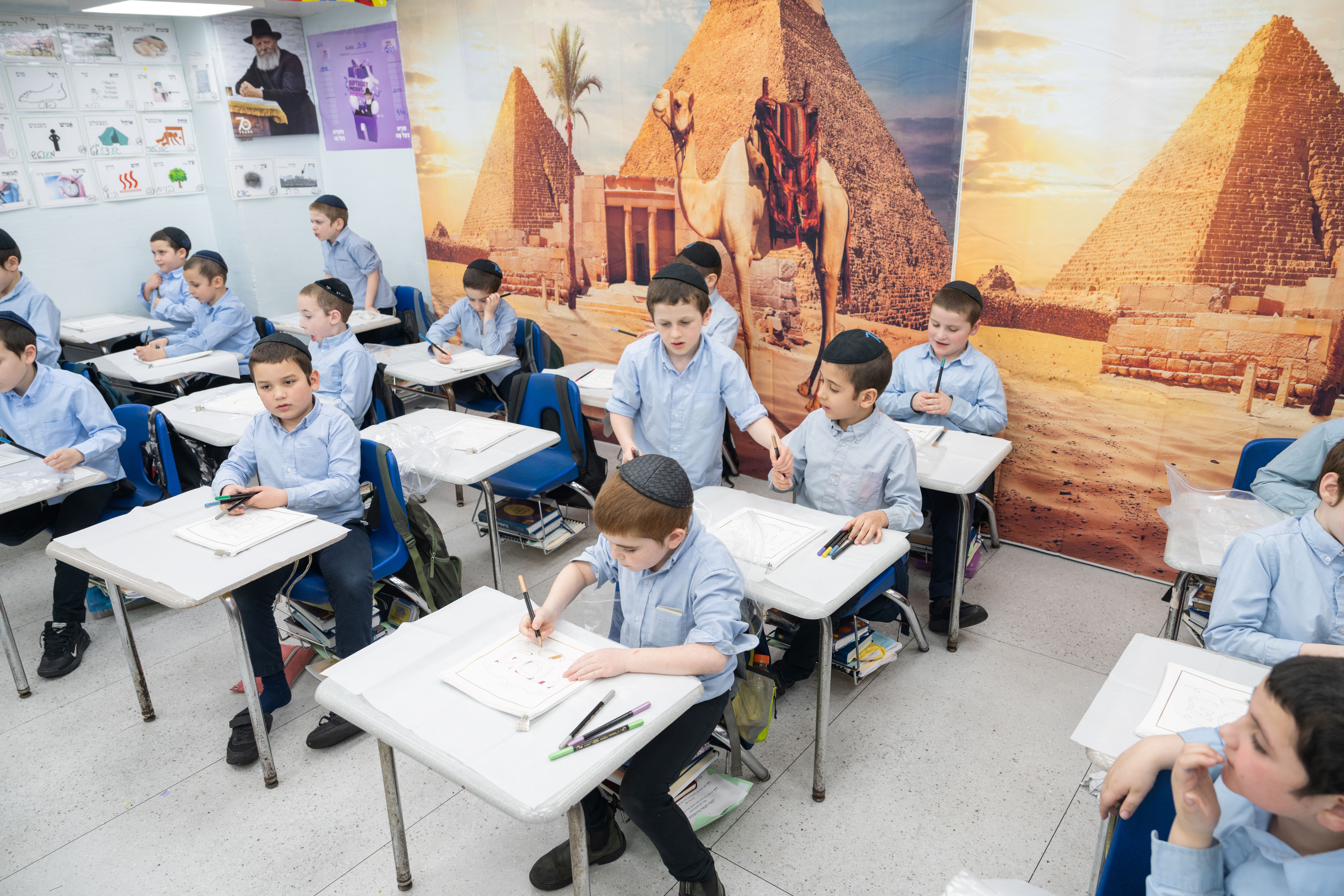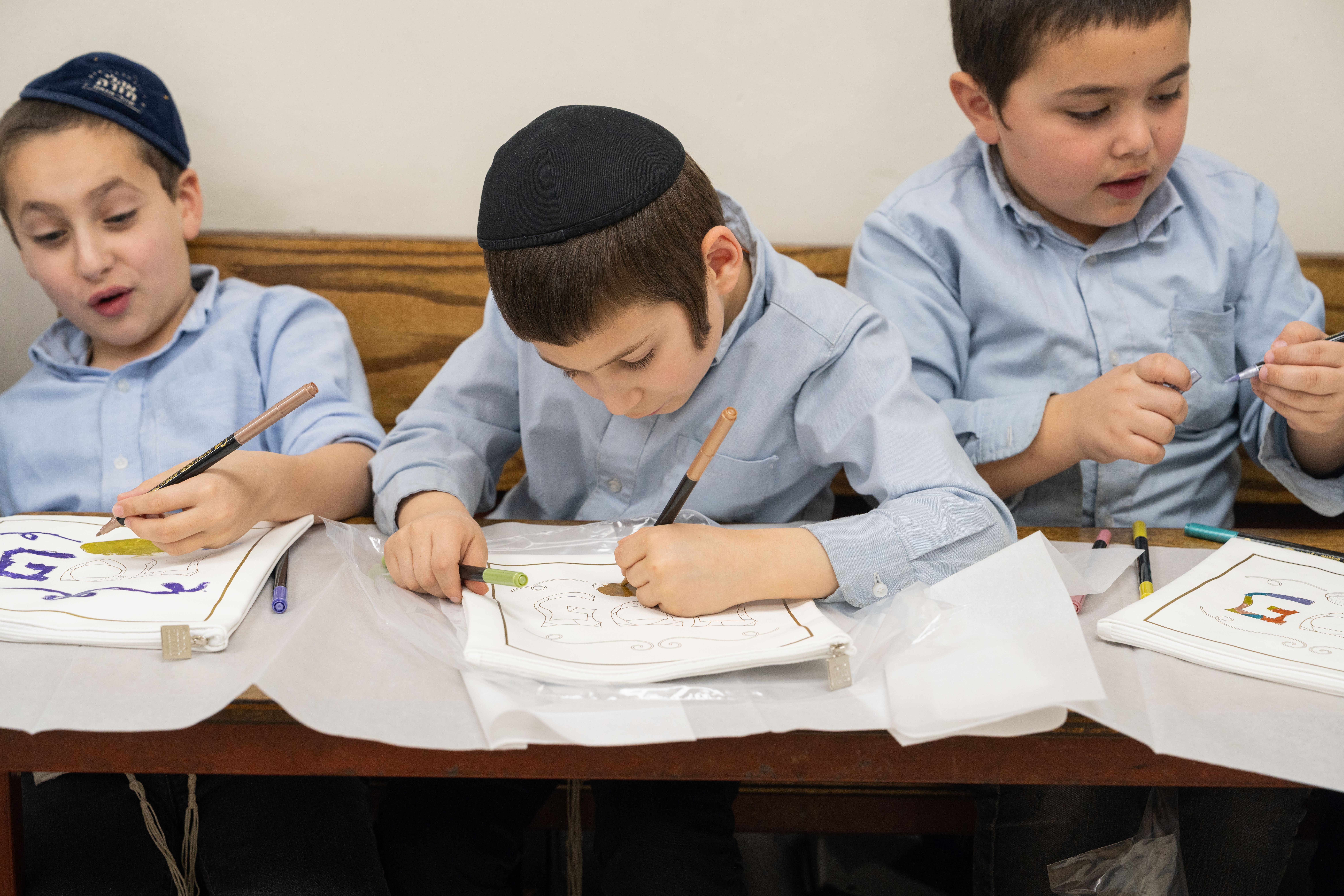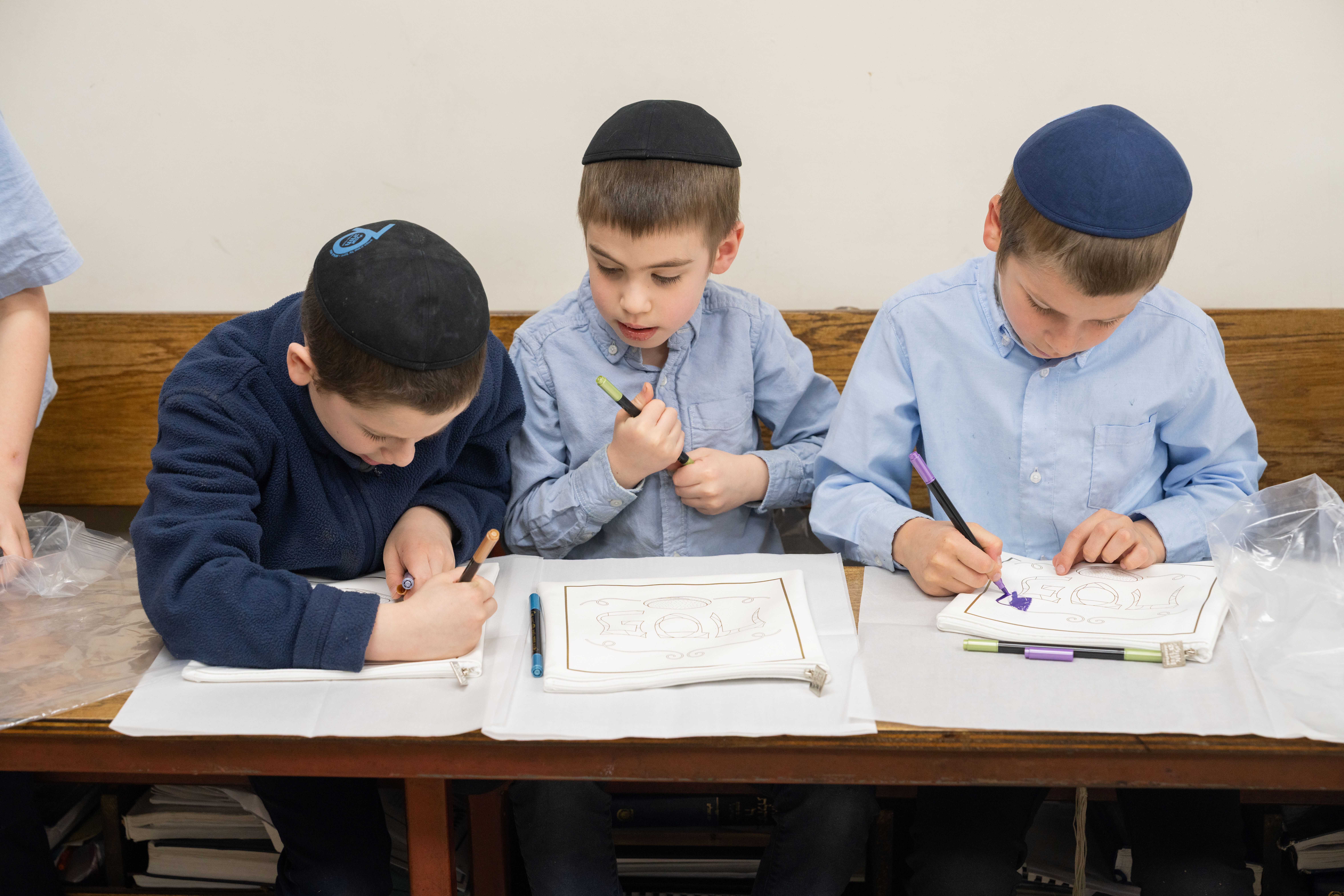 Adding to the excitement, the Oholei Torah Mothers Committee joined the classes for a hands-on Pesach activity, where talmidim decorated their own matzah bags. The project combined creativity with meaning, giving each child a personal keepsake to enhance their Yom Tov experience at home.