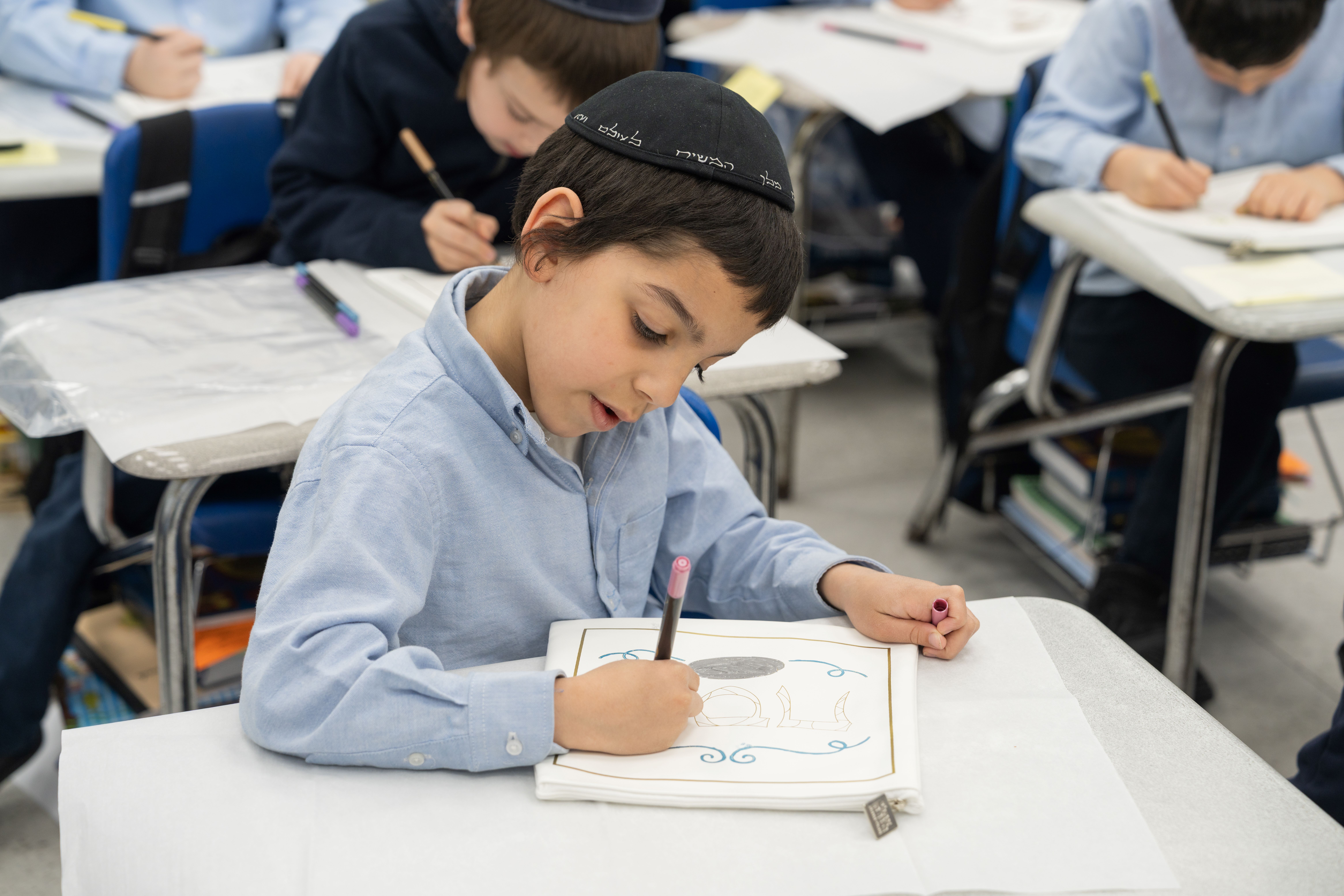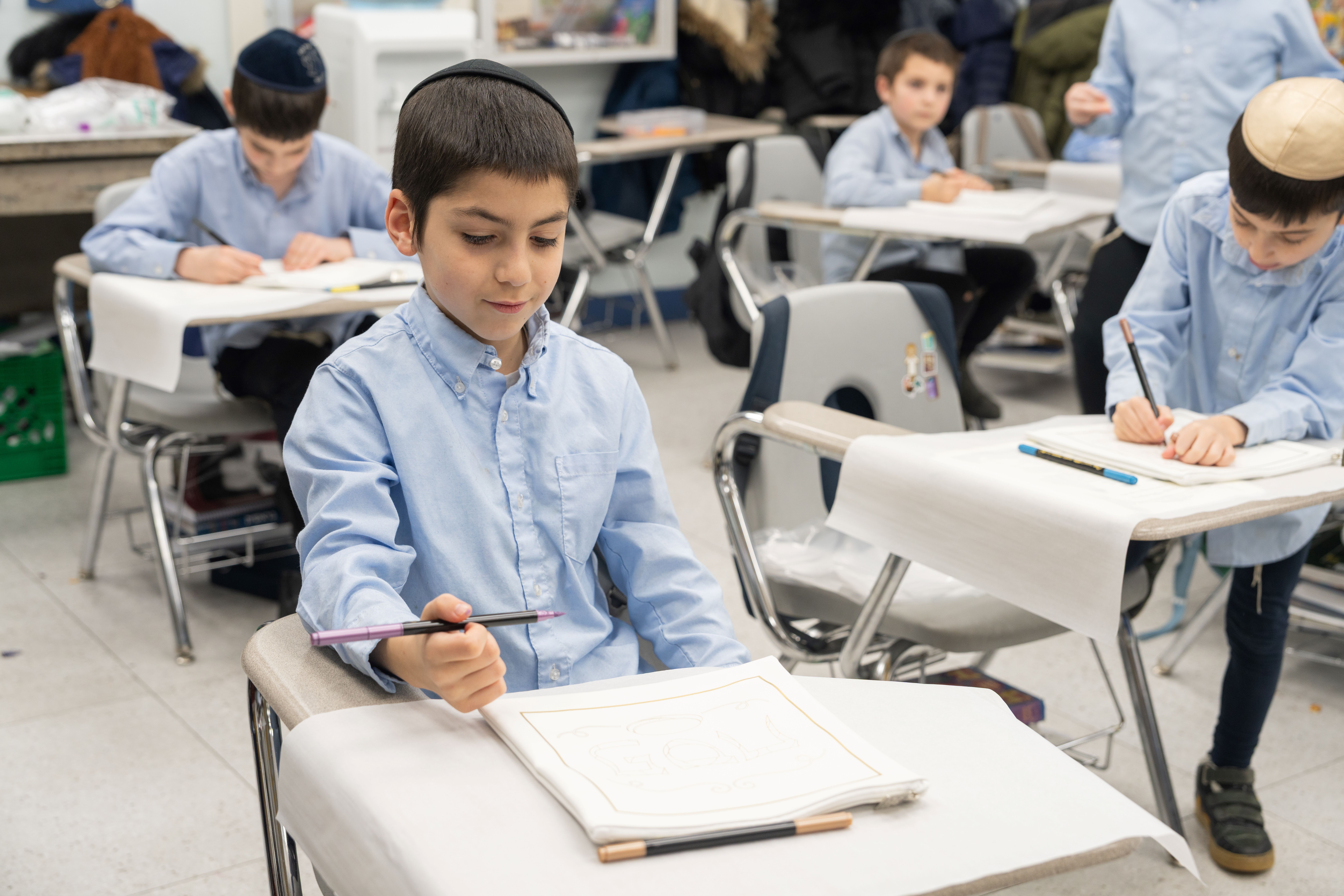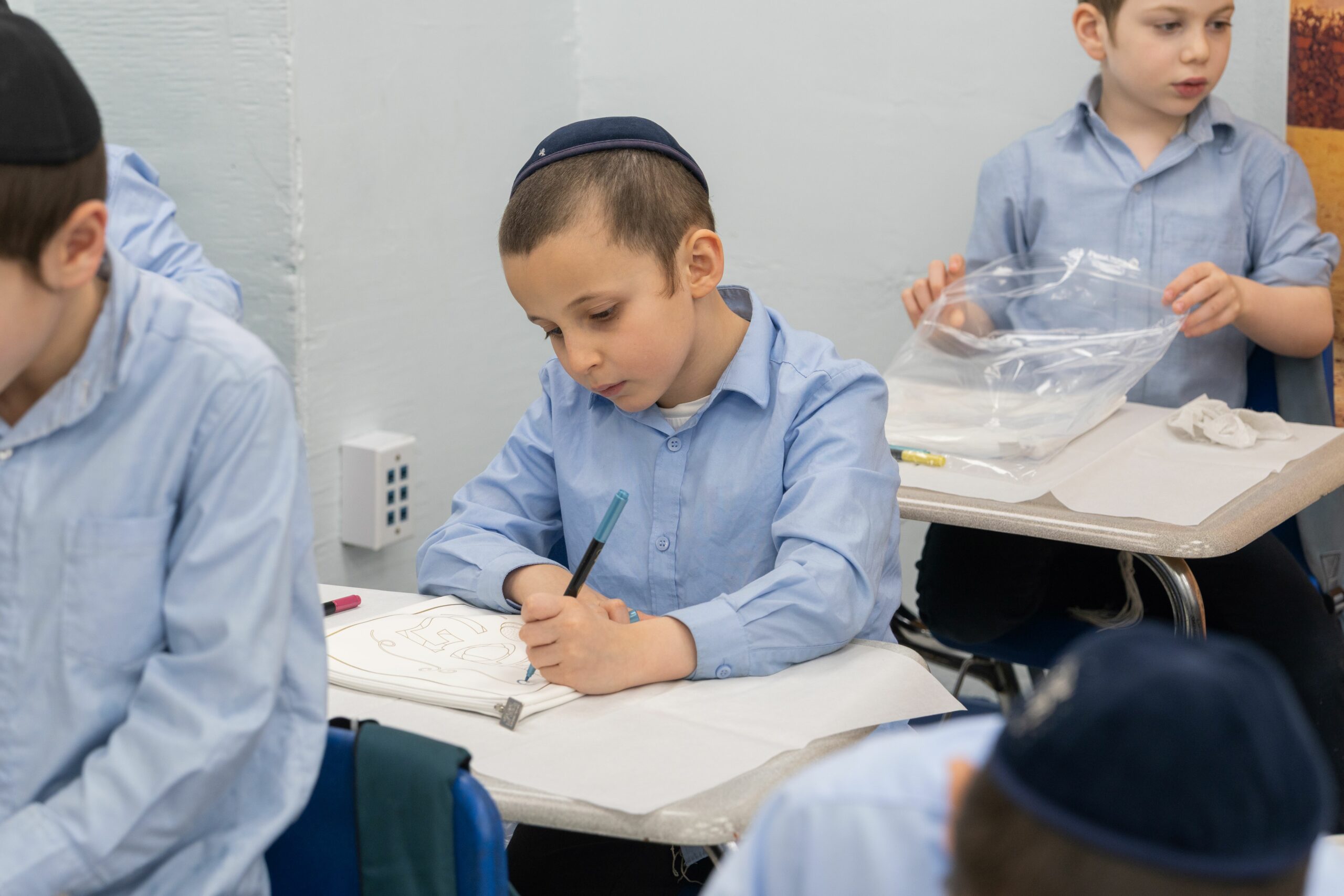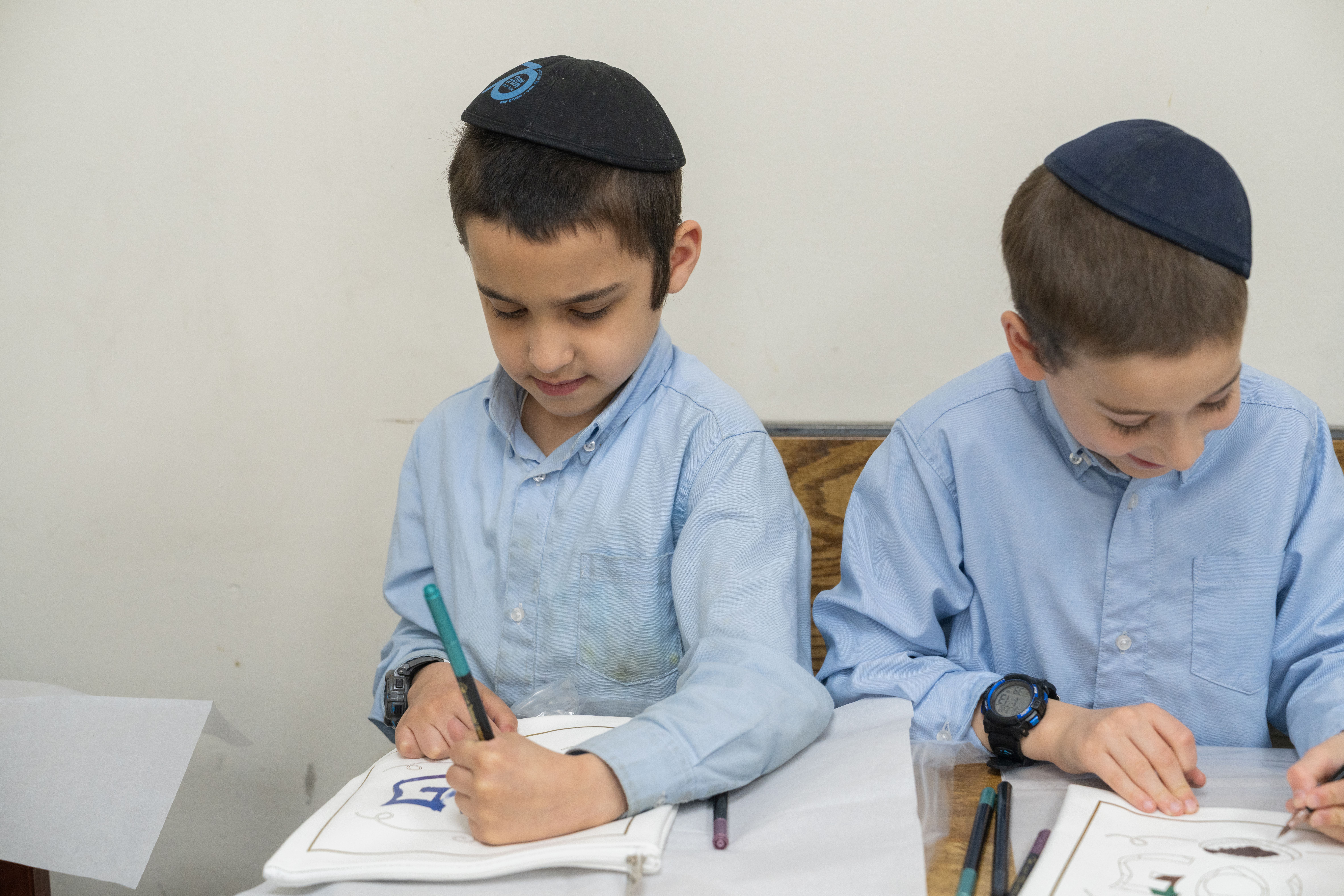 Adding to the excitement, the Oholei Torah Mothers Committee joined the classes for a hands-on Pesach activity, where talmidim decorated their own matzah bags. The project combined creativity with meaning, giving each child a personal keepsake to enhance their Yom Tov experience at home.