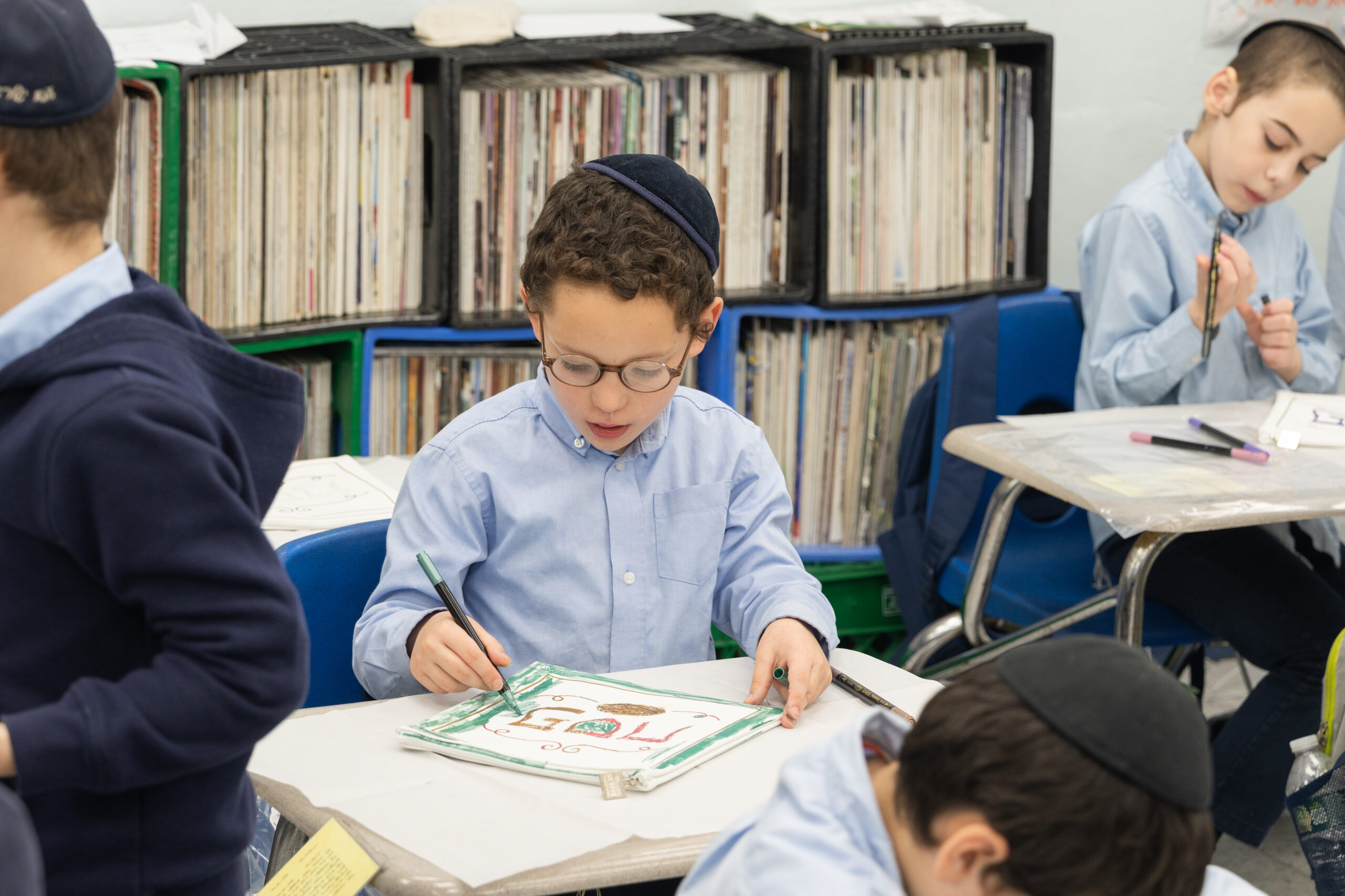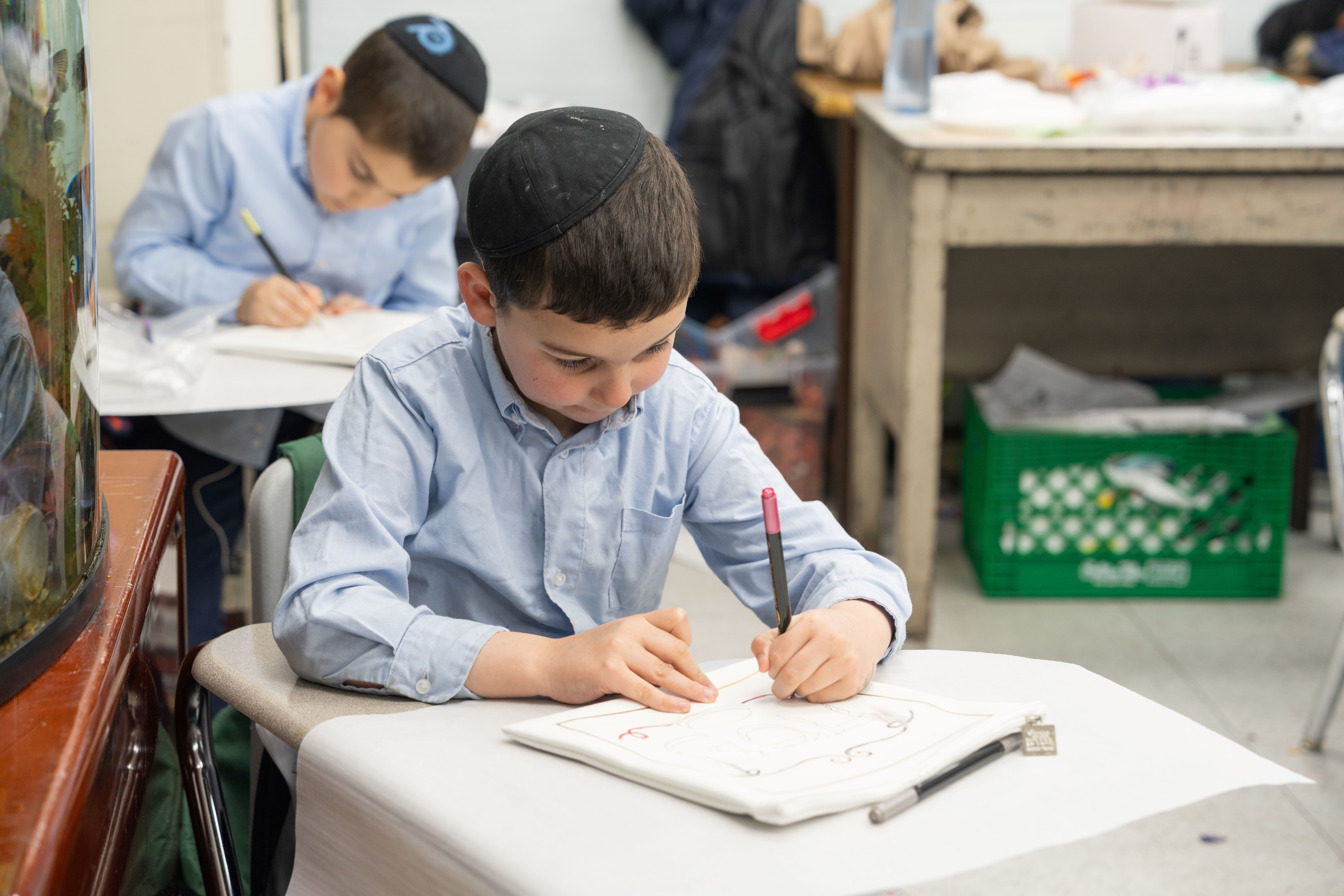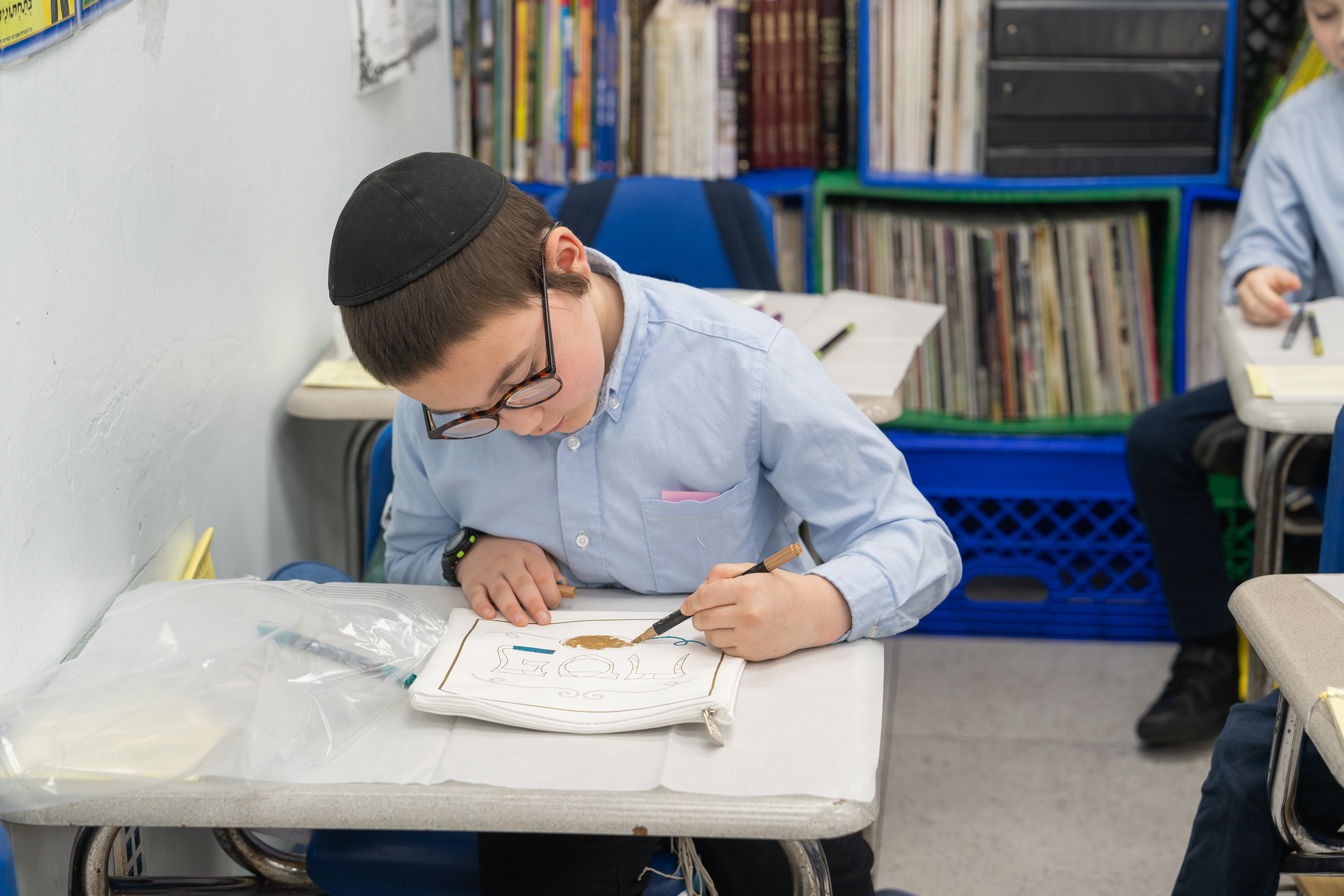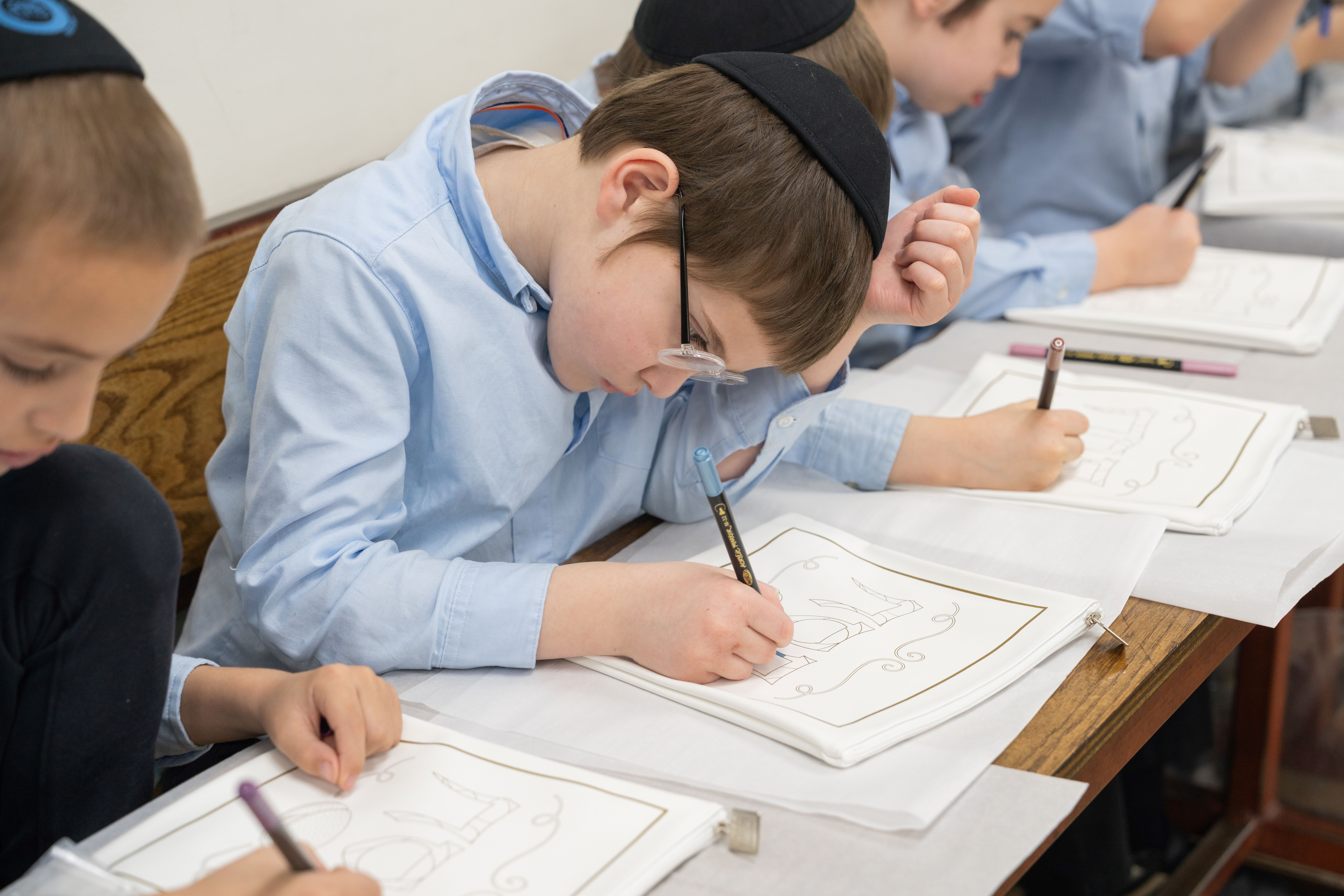 Adding to the excitement, the Oholei Torah Mothers Committee joined the classes for a hands-on Pesach activity, where talmidim decorated their own matzah bags. The project combined creativity with meaning, giving each child a personal keepsake to enhance their Yom Tov experience at home.