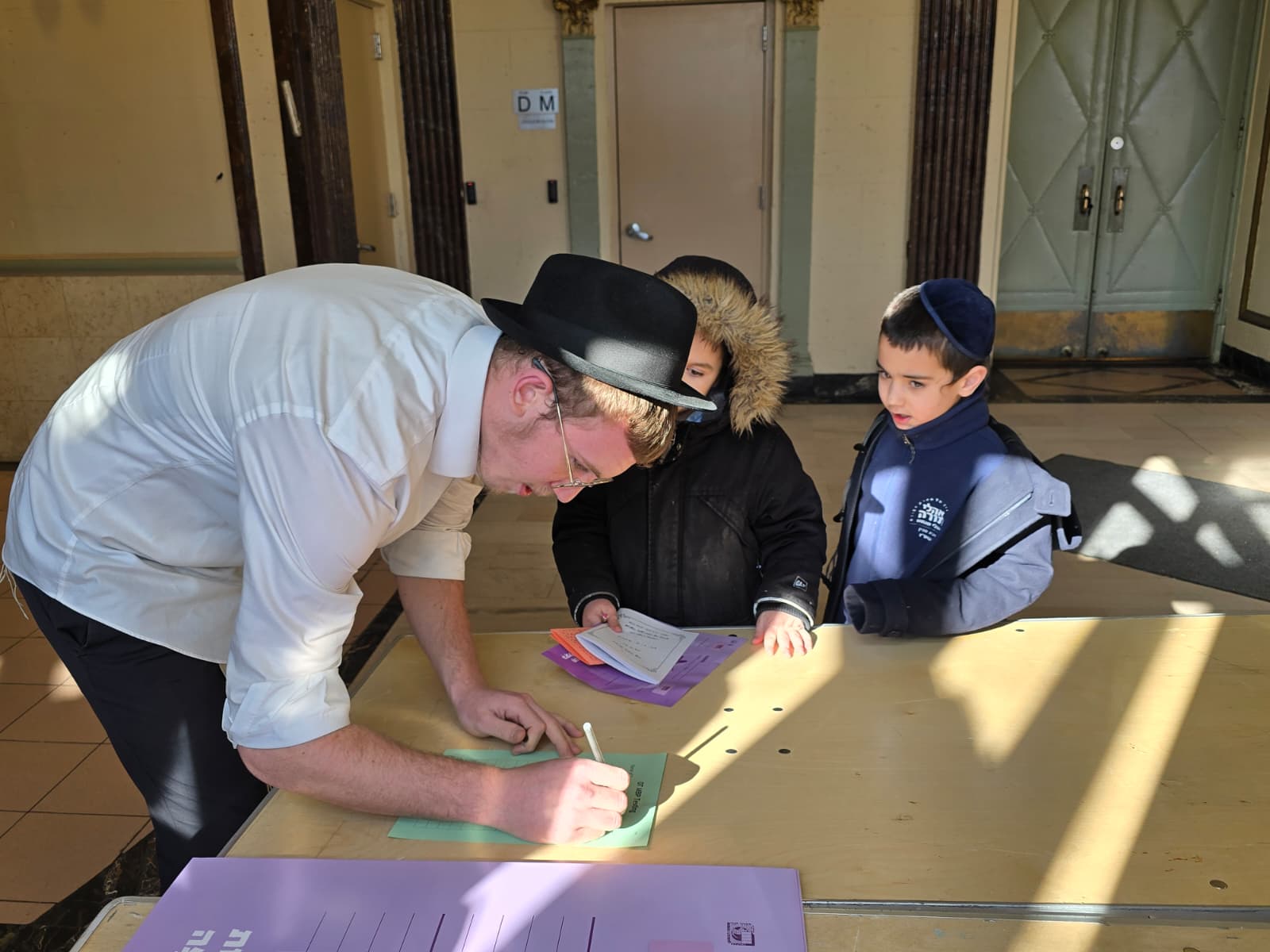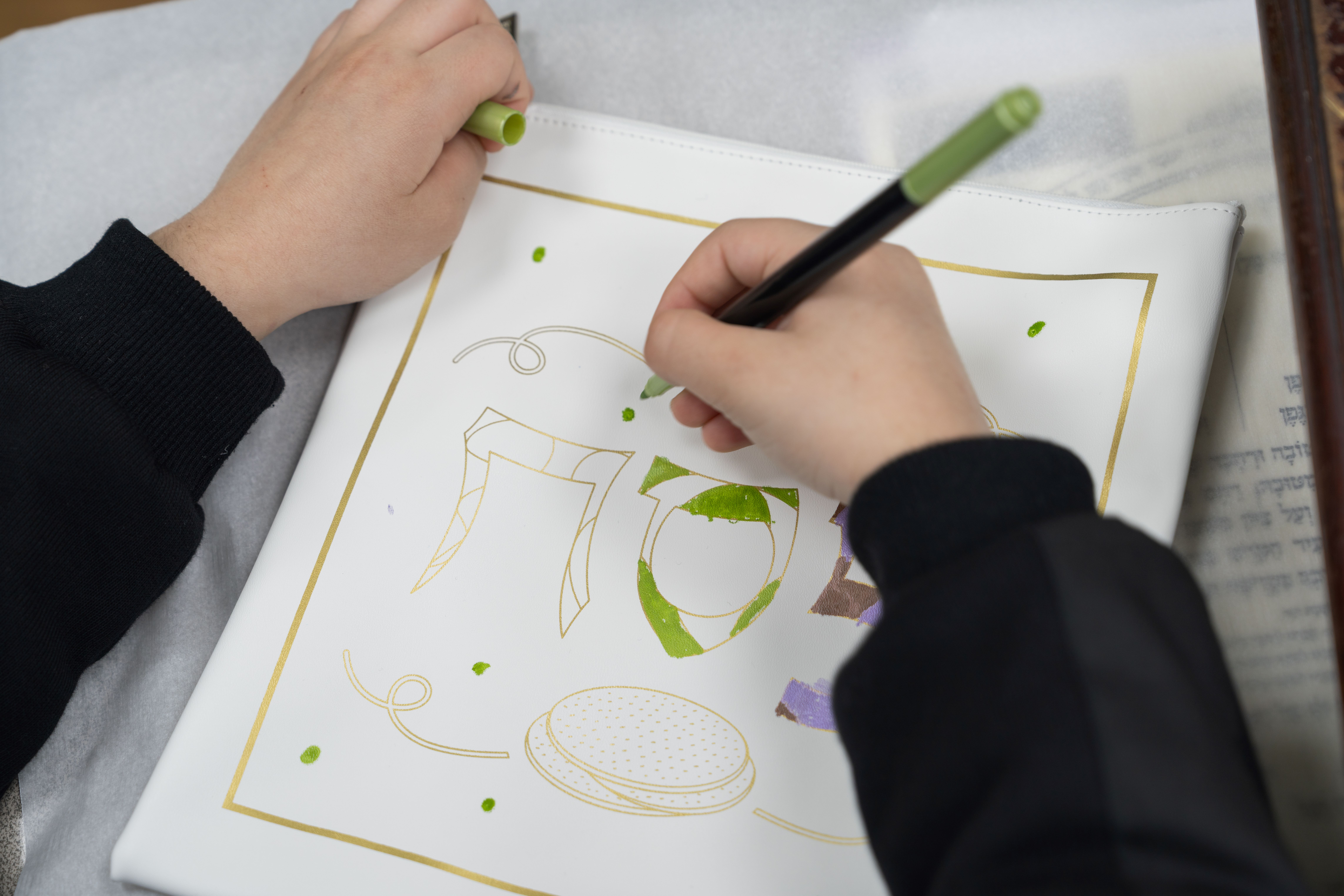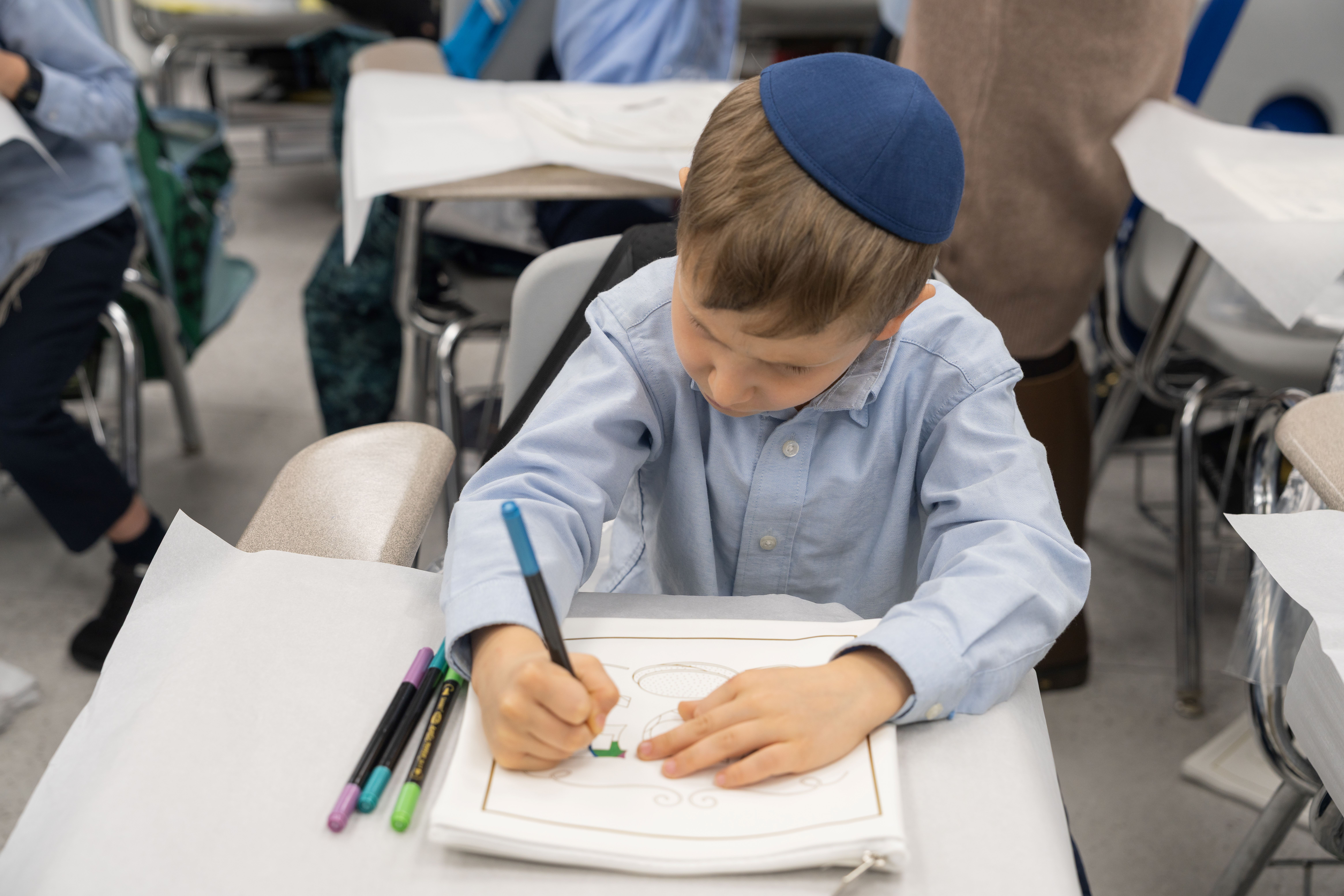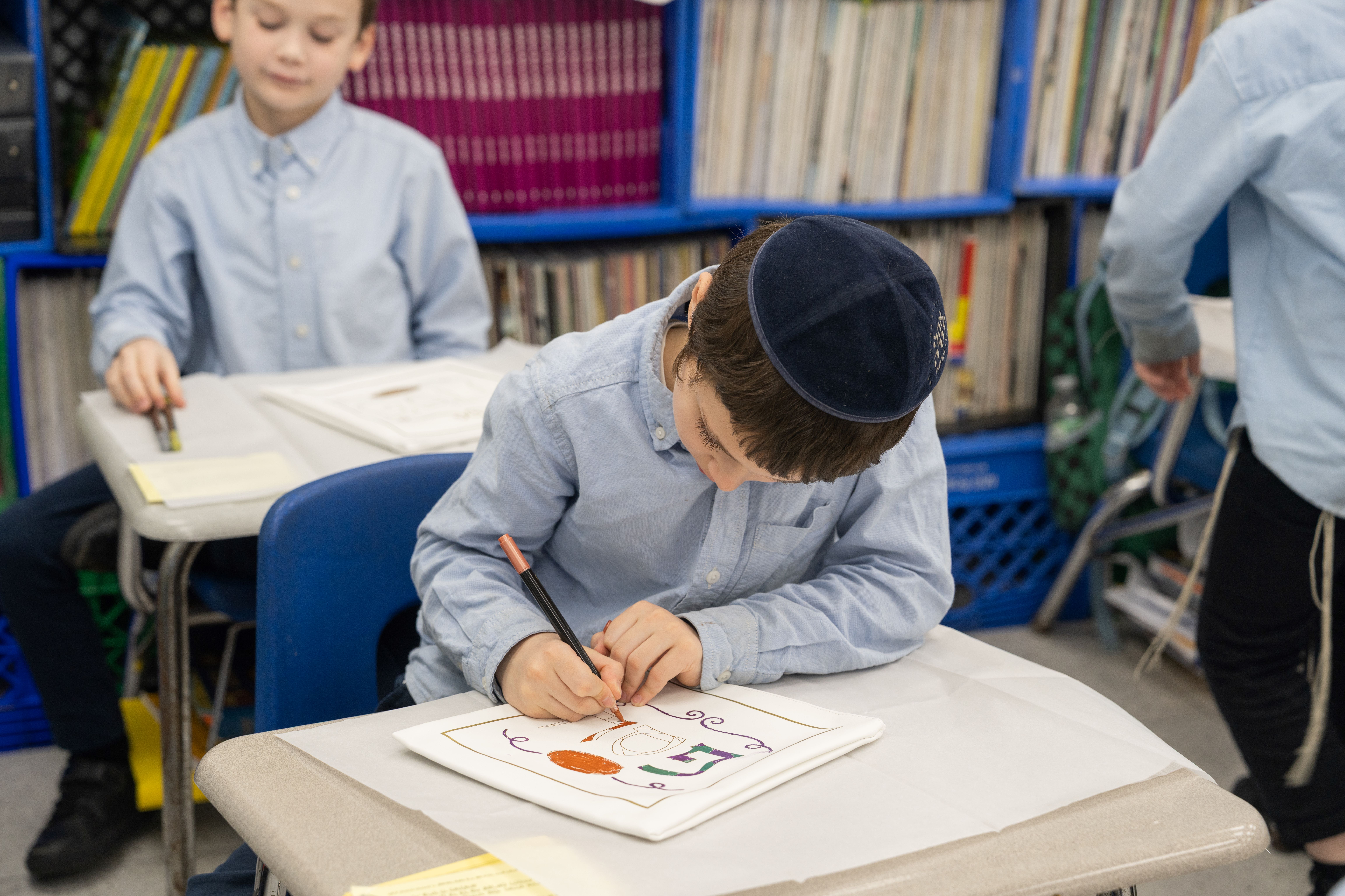 Adding to the excitement, the Oholei Torah Mothers Committee joined the classes for a hands-on Pesach activity, where talmidim decorated their own matzah bags. The project combined creativity with meaning, giving each child a personal keepsake to enhance their Yom Tov experience at home.