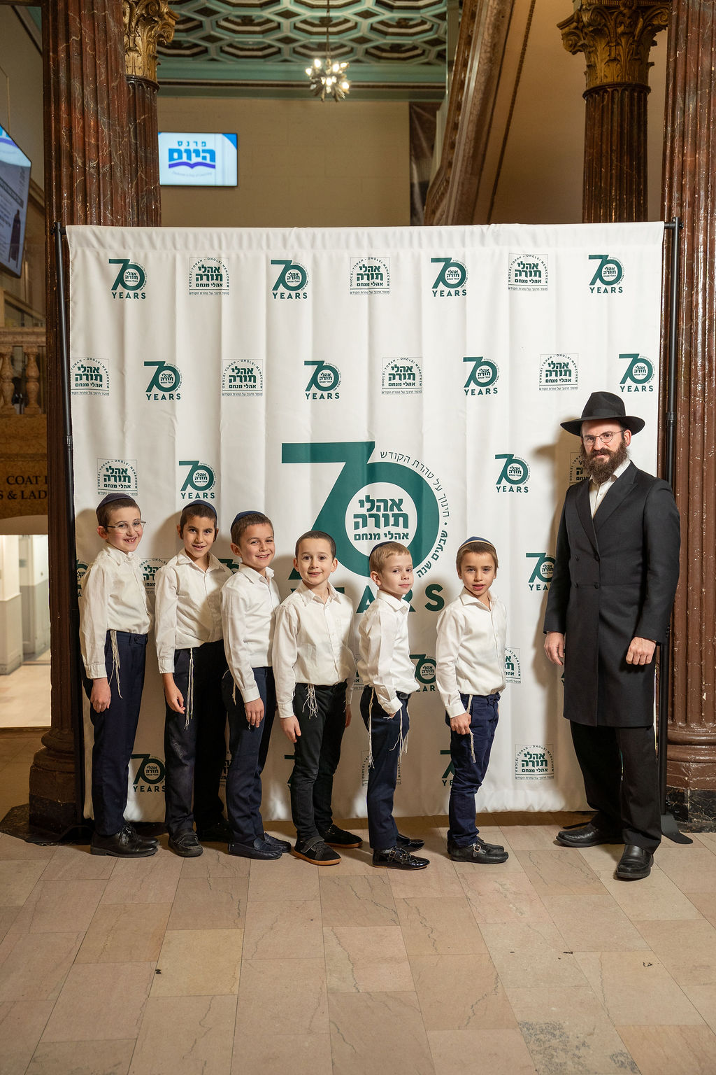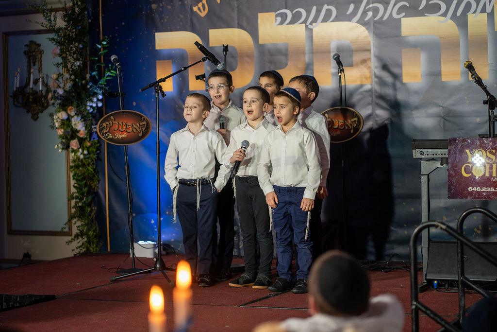 The program also included two stirring musical performances. Yakov Moshe and Yehoshua Binyomin Friedman, Talmidim in Oholei Torah, performed an original song titled “Thank You Rebbis,” thanking their Rebbis for their constant belief in them. The Oholei Torah Boys Choir performed the Shivim Shana remix live for the first time, led by Rabbi Shmuli Friedman, S’gan Menahel of Grades 3 through 5, filling the room with energy and pride.
