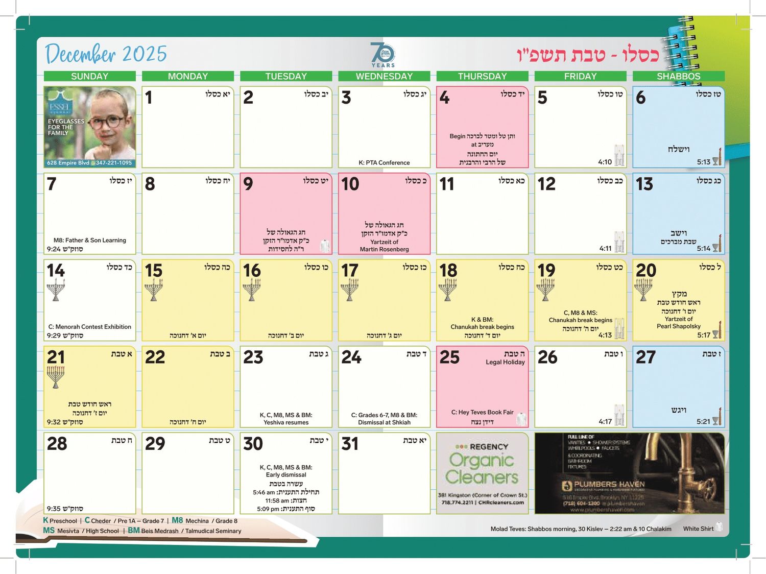 Oholei Torah Calendar